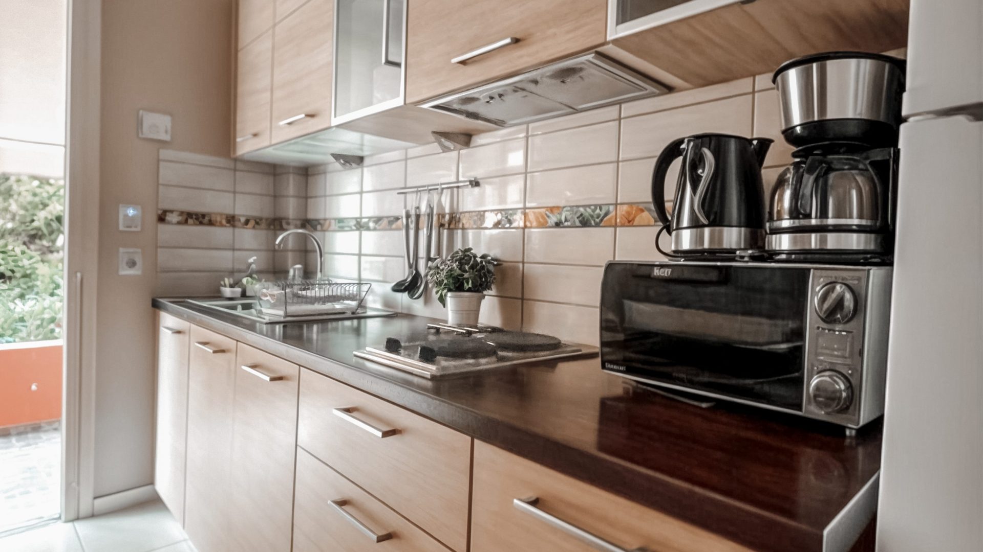 To independent studio Daisy, ready to reclaim its spotlight, lies on the ground floor of our property. Decorated in style, since classic elegance never goes unnoticed. The layout and ergonomic design of the kitchen attribute another dimension to the notion of classic. The area of the bedroom serves as a perfect finish to your day. The king size iron bed stands out for its discretion. The bathroom in the color of wheat exudes a flash of brilliance. The wide terrace with direct access to the garden is ideal for mind relaxation.